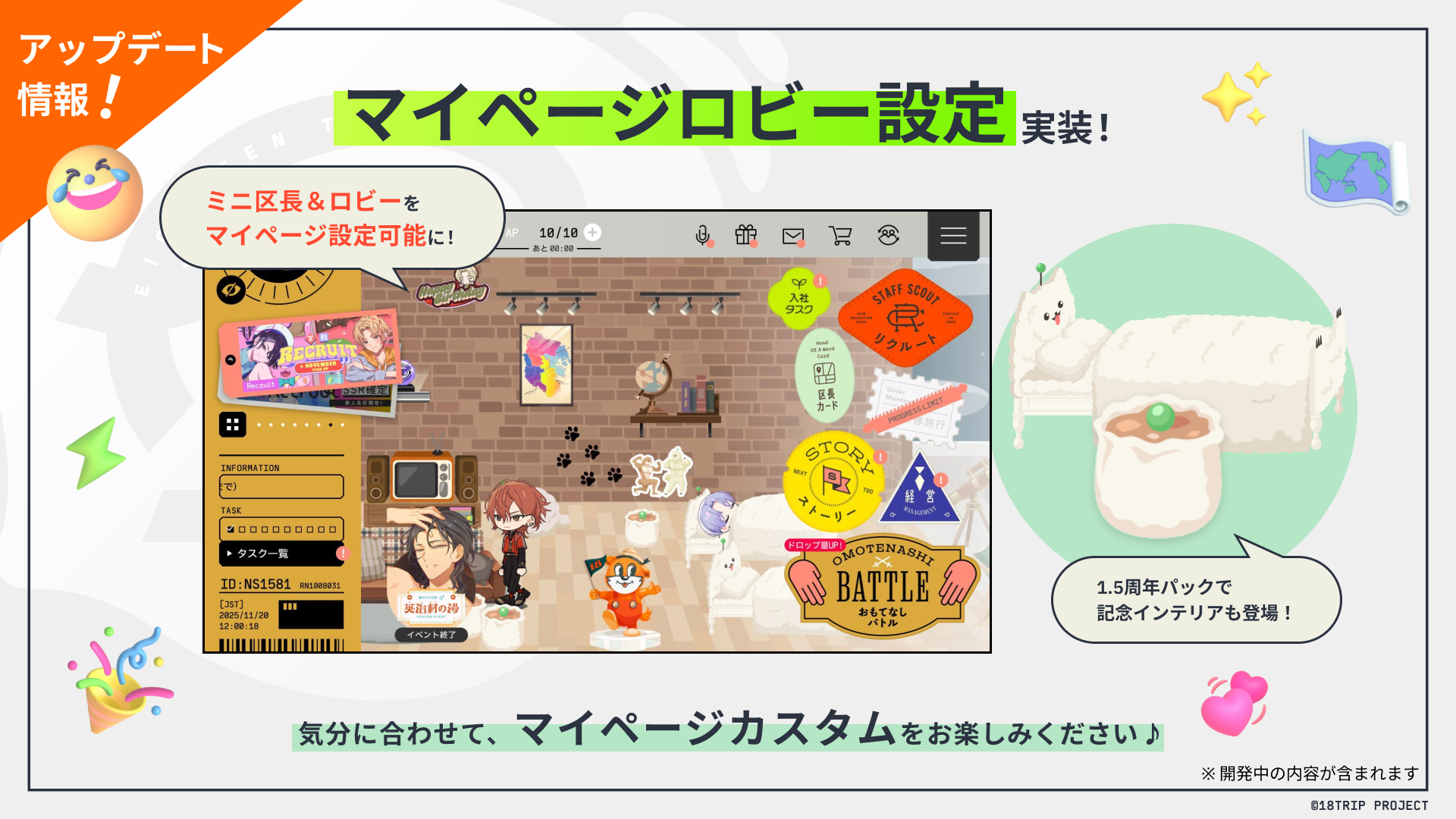 マイページカスタムにロビーを設定できるようになりました!自分だけのロビーを作ってマイページでもお楽しみいただけます♪