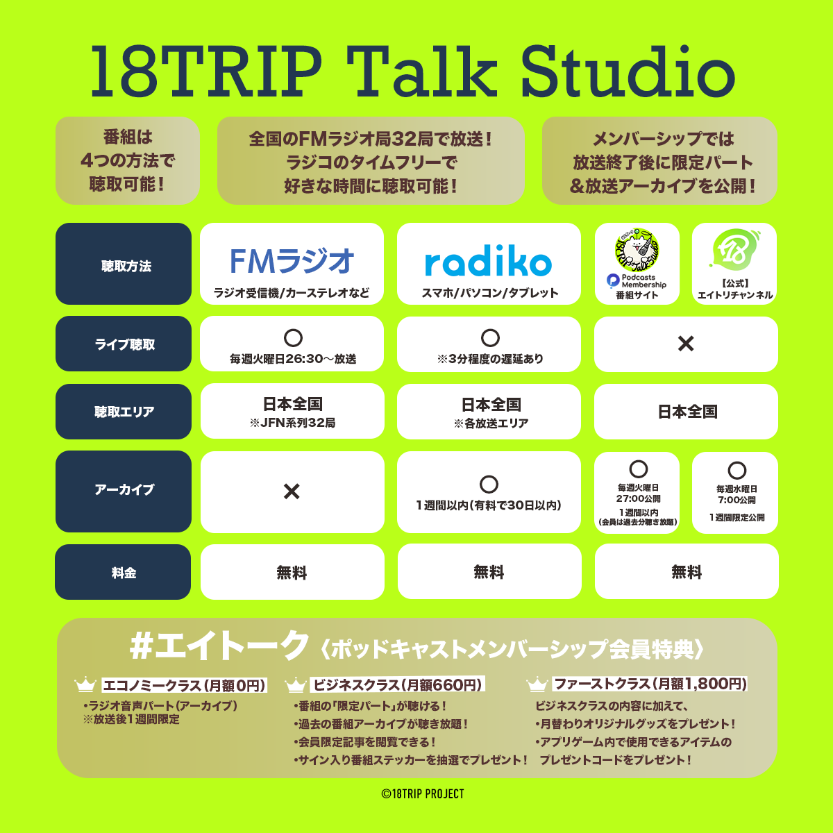公式ラジオ番組「18TRIP Talk Studio」、ポッドキャストメンバーシップ詳細を発表!