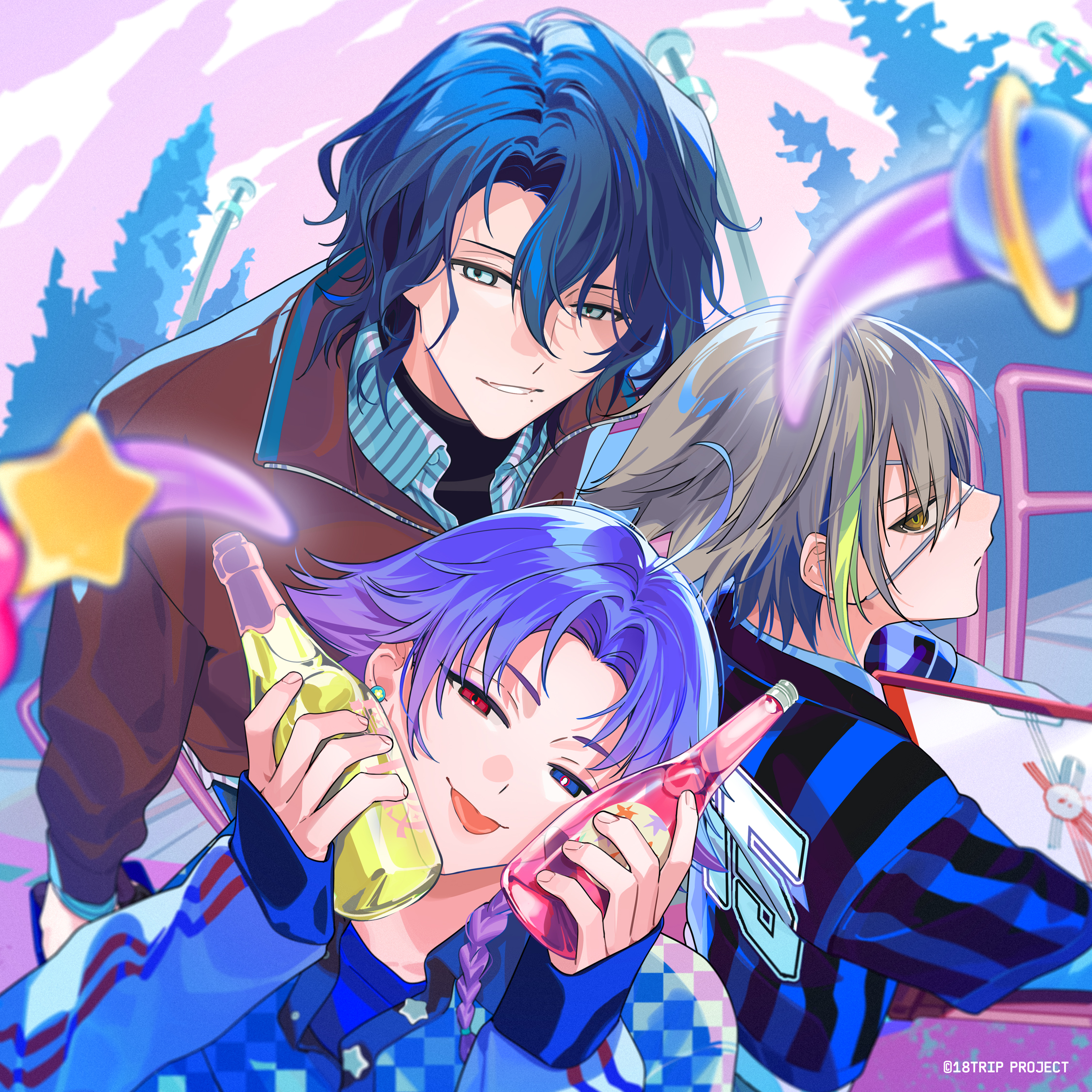 8月19日(水)発売のカセットテープ『18TRIP Cassette #13 ‘Funny day’ -L4mps-』のパッケージに使用される、キャラクターデザイン・およ先生描き下ろしの白光 琉衣、棗 夜鷹、夜半 子タろのイラストが解禁となりました!
